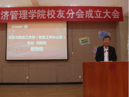 英国上市公司365招生与就业处处长、员工总会秘书长刘柏松代表员工总会致贺信,祝贺校庆40周年与员工分会成立,承诺将持续支持分会工作,希望其充分发挥桥梁作用,凝聚员工力量。
