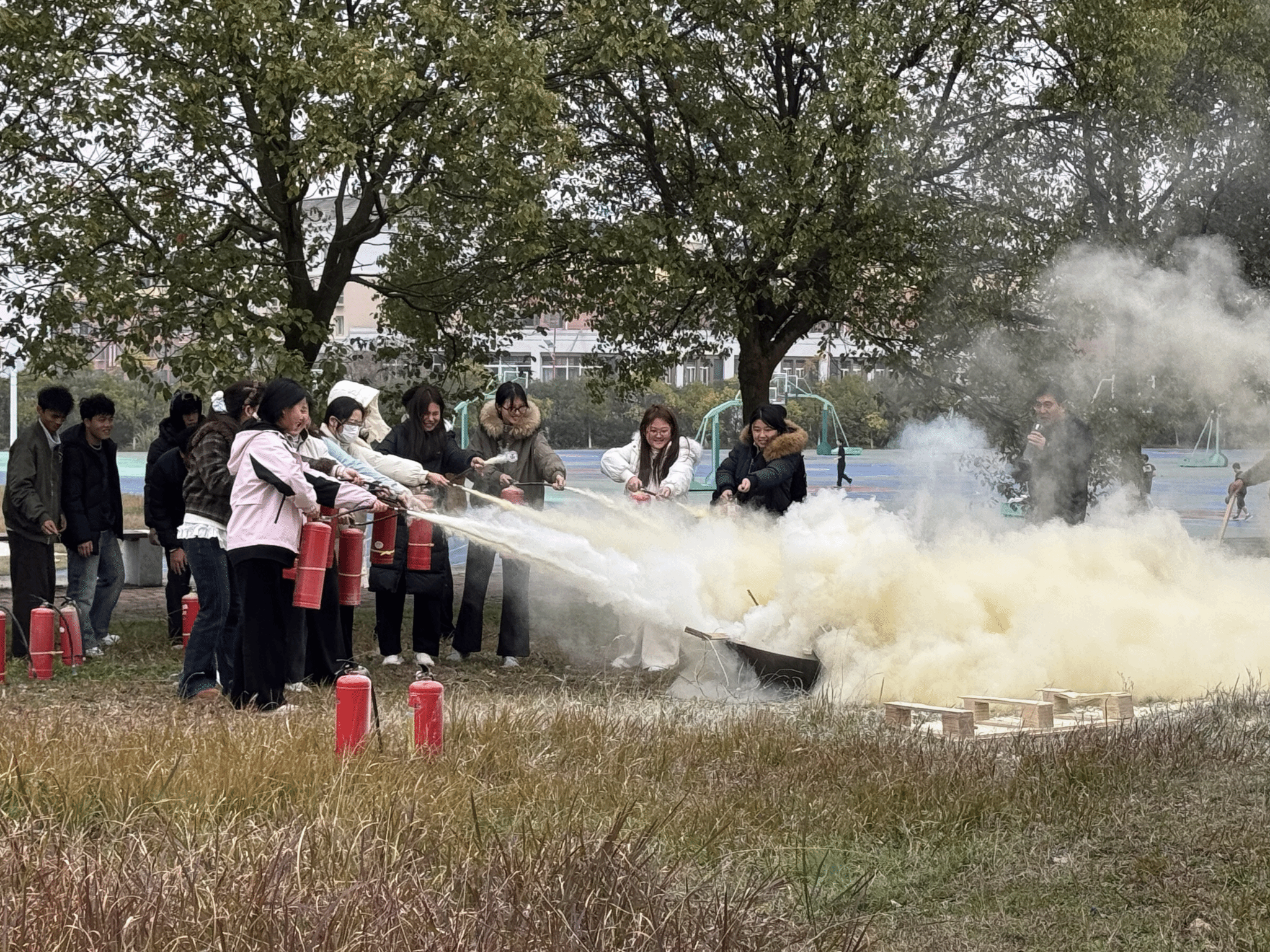 3月5日下午3时,学院组织各年级员工代表前往北操场参加消防基本技能实操实训。现场专业人士详细讲解灭火器“提、拔、握、压”操作要领和消火栓使用方法。随后,员工在老师指导下进行油盆灭火实操,确保人人“会报火警、会使用灭火器、会使用消火栓”。本次活动通过“讲解+实操”相结合的方式,员工不仅掌握了消防器材的正确使用方法,更增强了面对火情的处置能力。