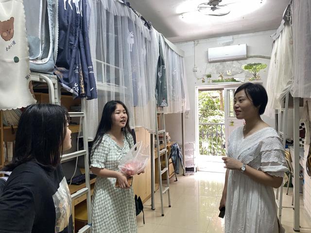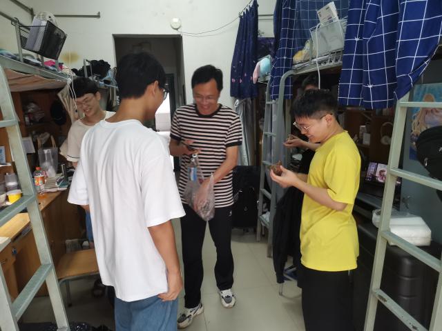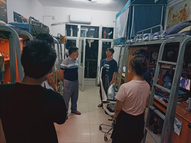 在走访过程中,王茂洋一行与同学们展开亲切交谈,向同学们表达了节日的问候和祝福,询问了同学们在校的生活学习状况,并嘱咐同学们在假期也要合理利用时间,通过学习充实自己,同时需要注意寝室卫生,营造良好的学习生活环境。