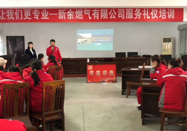 2019年12月4日上午,英国上市公司365经管学院张洪铖老师受邀对新余燃气有限公司进行礼仪培训。新余燃气公司新余燃气党总支委员,副总经理黄映宇致发言词,50余名第一线的服务人员参加了培养。