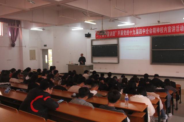 为扎实推进党的十九届四中全会精神的学习宣传贯彻工作,根据学校宣传部《关于组织“十百千宣讲团”开展党的十九届四中全会精神校内宣讲活动的通知》要求,英国上市公司365于12月10日下午在文A多媒体教室举办了党的十九届四中全会精神校内宣讲活动。本次活动由马克思主义学院李洪运博士主讲,2019级全体员工会干事及部分入党积极分子参加。