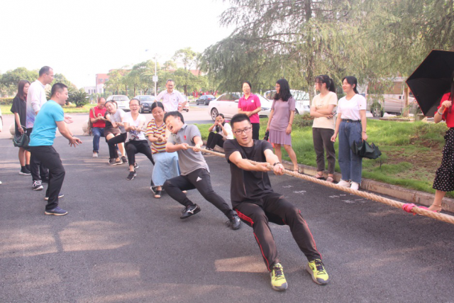 这次比赛由三个教研室和团学组共四个队组成,采取三局两胜制,分四大组两两对决,每轮比赛中,各代表队队员双手紧握长绳,团结一心,拼尽全力。现场拉拉队个个热情高涨,呐喊助威给比赛增添了一抹亮色!尤其在胜负难分时刻,大家毫不退却,咬紧牙关,坚持到底。比赛场面紧张而热烈,充分展示了教师们自强不息的品格和团结协作的精神风貌。此次比赛比出了水平、赛出了风格,也增进了教师之间的交流与合作,展现了教师的强健体魄和昂扬风貌。