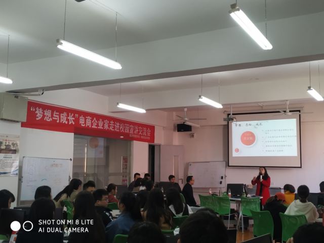 2019年3月12日下午,由经管学院和双创学院共同举办的电商企业家走进校园宣讲会在VBSE教室开展。此次会议主题是“梦想与成长”,邀请了江西宇喆电子商务有限公司创始人黄文娟,江西海淘电子商务有限公司董事长张小良,江西助力科技发展有限公司董事长冯爱民,抖商集团江西运营中心负责人周会仁等企业家代表。目的是来让在校电子商务专业生了解的电子商务发展趋势,跨境电商、抖音等最新的一些电商技术的应用。17电商班员工参加本次宣讲会。
