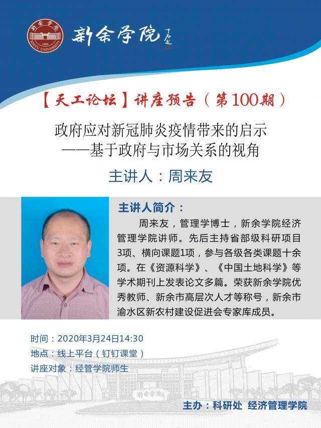 讲座预告:《政府应对新冠肺炎疫情带来的启示——基于政府与市场关系的视角》