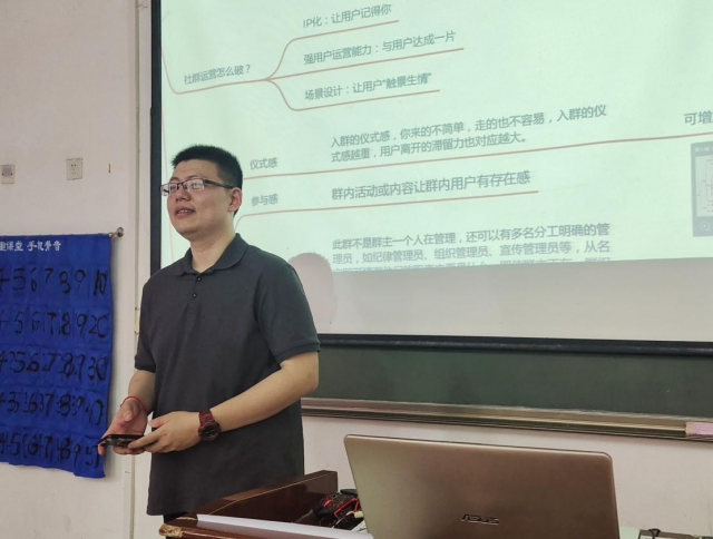 首先,汪涛老师抛出“社群”这一概念,讲述了社群基本概念、社群用户和社群价值,让同学们认识到社群经济的重要性,社群经济已然成为这个时代的新动力之一。
