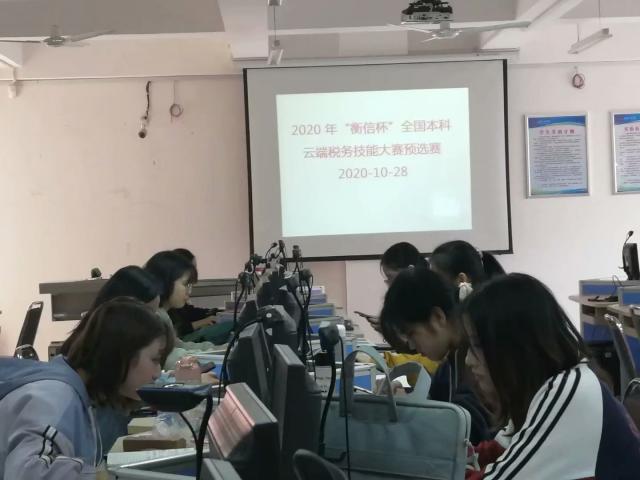 2020年10月28日,由中国商业会计协学会主办、浙江衡信教育科技有限公司技术支持的2020年 “衡信杯”全国税务技能大赛(本科)预选赛在公司成功举行。经过为期2个月的海选赛,公司员工积极参与角逐,最后8名员工胜出,并于10月28号代表学校参加江西省预决赛,本次省级预决赛(网络赛)新余赛区在公司主D财税一体化机房进行,竟赛期间,除了老师监考外,还有全程录像,保证了比赛的公正性。