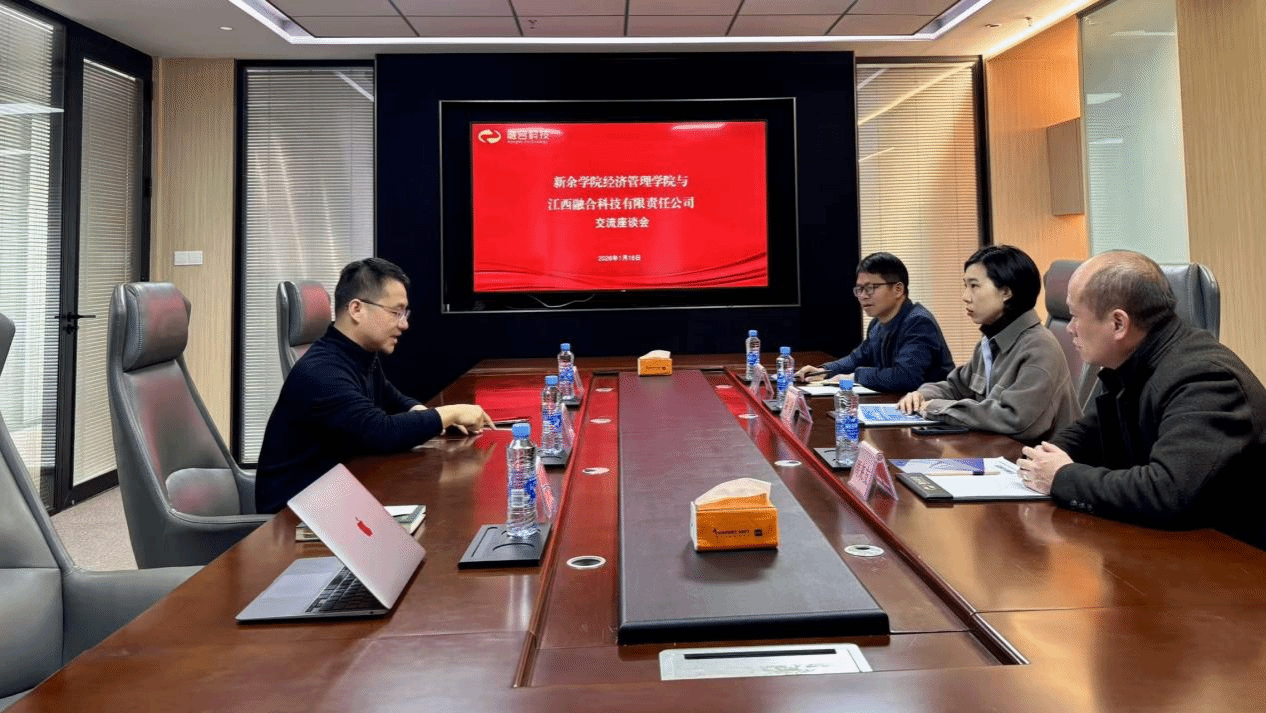 江西融合科技有限公司董事长童伙球详细介绍了企业的发展历程、核心业务布局及未来战略规划。在随后的座谈交流中,双方围绕数字经济时代背景下企业对经管类人才的专业技能要求、综合素质结构及校企协同育人模式等议题进行了深入探讨。企业代表结合当前行业发展趋势与实践经验,为学院的专业建设、课程体系改革及人才培养提供了宝贵的建议。
