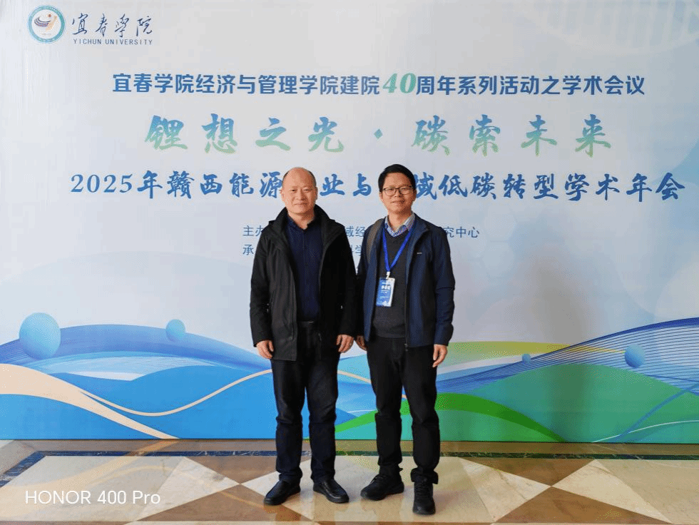2025年12月28日,以“锂想之光,碳索未来”为主题的2025年赣西能源产业与区域低碳转型学术年会在宜春迎宾馆隆重举行。英国上市公司365(新余发展研究院)受邀参会,公司周来友博士(副教授)、徐加涛博士代表学院参加研讨;陈灵明博士(教授)投稿论文在会议评选中荣获二等奖。