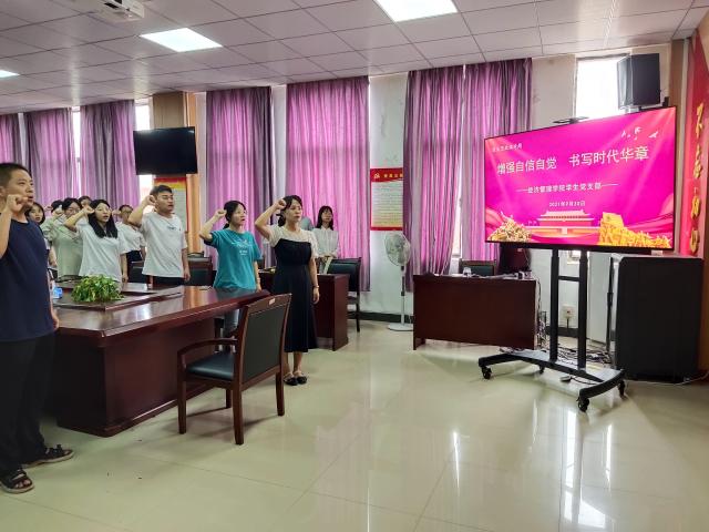 会上,向媛丽老师从回顾中国共产党百年光辉历程出发,带领同学们回顾建党百年的四大伟大成就,向同学们诠释了中国共产党伟大复兴建党精神,要求全体党员坚持真理、坚守理想、践行初心担当使命、不怕牺牲英勇斗争和对党忠诚不负人民。与会同志重温了“七一讲话”中展望中华民族伟大复兴的九个必须,大家纷纷表示我们应当以史为鉴,开创未来,确保党在新时代坚持和发展中国特色社会主义的历史进程中始终成为坚强的领导核心,汇聚起实现民族复兴的磅礴力量!向老师说道:“未来属于青年,希望寄予青年,在座的同学都是党员,希望你们能不负时代,不负韶华,不负党和人民的殷切希望。”