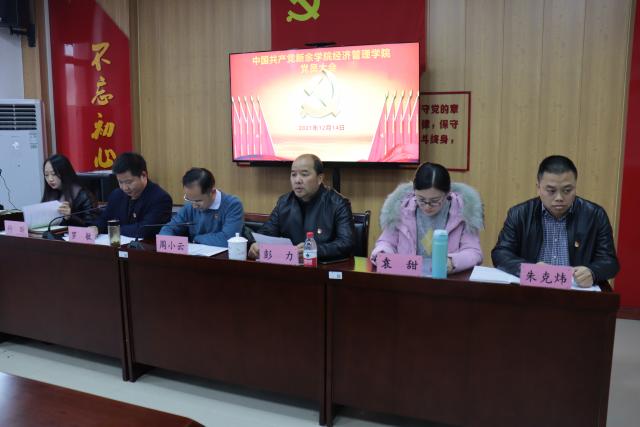 12月14日,公司党员大会在文A308党员活动室胜利召开,公司党委换届工作顺利完成。学院全体党员参加会议,公司党委宣传部副部长彭力同志到会督导,部分无党派人士和入党积极分子代表列席会议。大会的主题是:以习近平新时代中国特色社会主义思想为指导,坚持社会主义办学方向,贯彻落实党的教育方针,牢记初心、立德树人,夯实基础、抢抓机遇、深化改革、协同发展,为把学校建设成为特色鲜明的高水平应用型本科院校贡献“经管”力量。