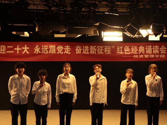 经过各学院的推选,共有九组选手参加诵读会。一场诵读,全方位展现了同学们热爱中国共产党、热爱伟大祖国、讴歌新时代、投身新征程的精神风貌和生动实践。活动中,九组选手伴着婉转的旋律,和着铿锵有力的节拍,声情并茂的诵读了不朽的军魂、党的赞歌、我深深地爱着我的祖国等红色经典。他们用慷慨激昂、精神饱满的朗诵,倾诉着对祖国母亲、对中国共产党的感激和热爱之情,出色的表现赢得了在场观众及评委的热烈掌声。