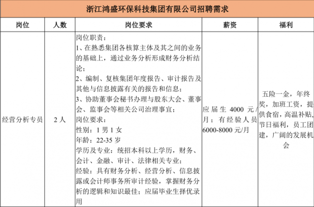浙江鸿盛新材料科技集团股份有限公司招聘简章